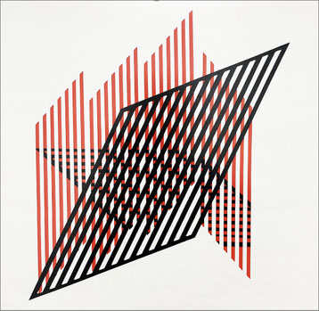 rhythmischen Feldern und zu neuen graphischen Bildinhalten. Waagerechte und senkrechte Elemente verbinden sich zu seriellen Rastern und werden durch diagonale oder gebogene Linien ergänzt, die