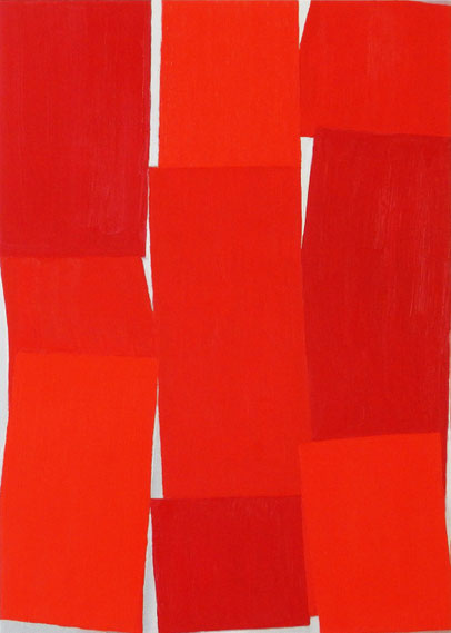 dem Bildraum bewegungsdynamische Impulse geben. Serielle rhythmische Formen werden mehrfach gebrochen und in mehreren Schichten angelegt. So entstehen bewusst gesetzte und auch zufällige Fehler